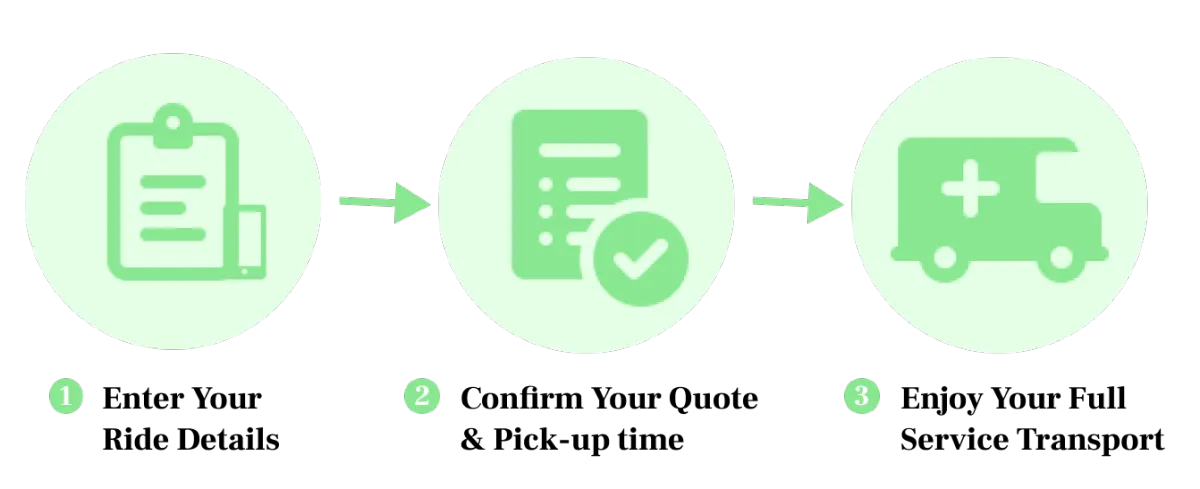 Schedule your next ride in just a few clicks. Our trained team ensures every trip is safe, timely, and comfortable — from pick-up to drop-off